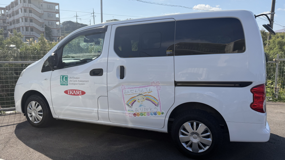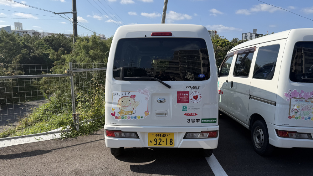 イカリ消毒沖縄では、安全運転活動の一環として、こどもたちが描いた絵をラッピングした営業車両のお披露目会を開催しました。
